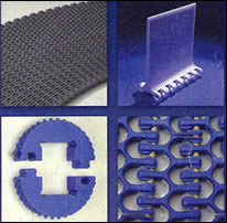 En texturas y porcentajes de aberturas que van desde el 0% al 37% de abertura , colores blanco, café, azul, gris pasos desde ½ hasta 2″ Rectas , curvas ó ambas aplicaciones inclinadas , declinadas para grado alimenticio, cámaras de congelación túneles de temperatura, abrasión, etc.